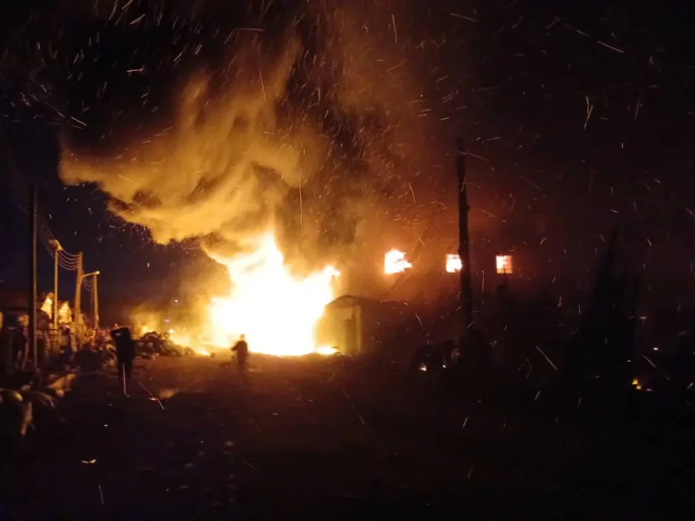 DAILY POST gathered that the inferno which erupted at about 2 am Saturday morning has destroyed properties worth millions of naira.