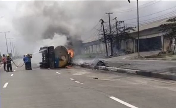 BREAKING: Fire averted as fuel tanker explodes in Lagos